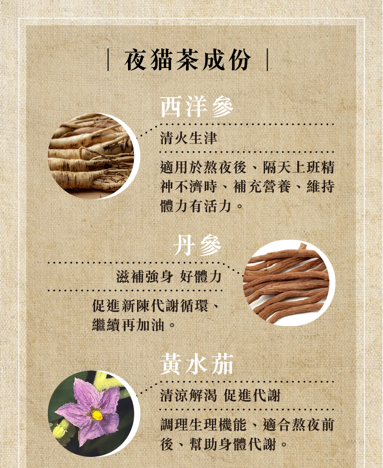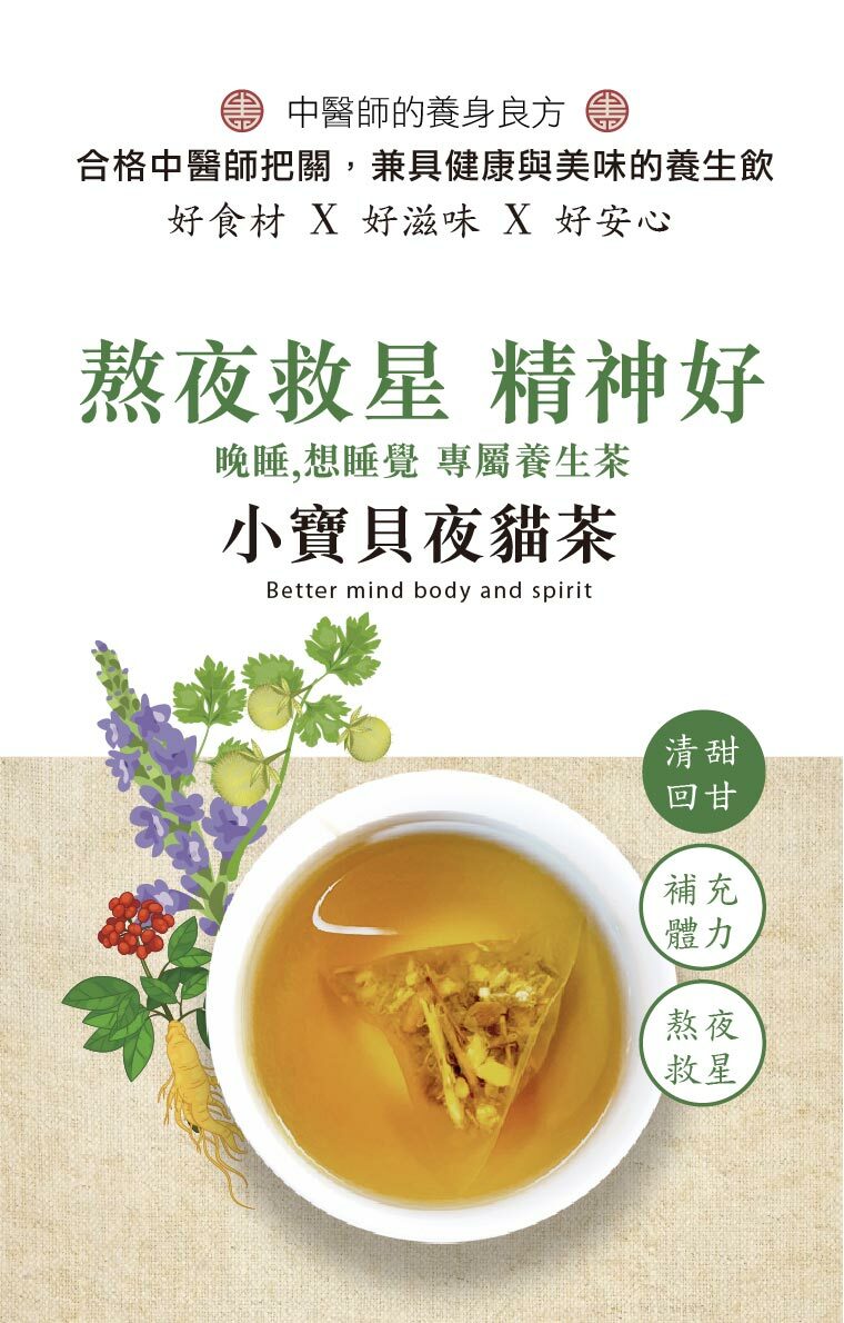 夜夜精神旺盛 增強體力,專為熬夜的你獨家調配的草本養生茶。